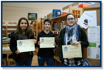 O Diretor da Escola, Dr. Manuel Coutinho, entregou os prémios aos três primeiros classificados na cerimónia, que decorreu no dia 12 de novembro, na BE. Nela estiveram presentes os colegas e amigos dos premiados, os encarregados de educação e os diretores de turma. Todos quiseram felicitá-los, bem como partilhar este momento de satisfação e alegria, que eram bem visíveis nos rostos de cada um.